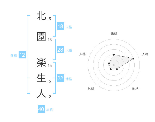北園 楽生人さんを姓名の画数から五運を鑑定