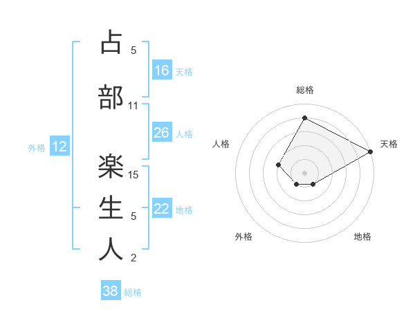 占部 楽生人さんの総格は38画の4点!
