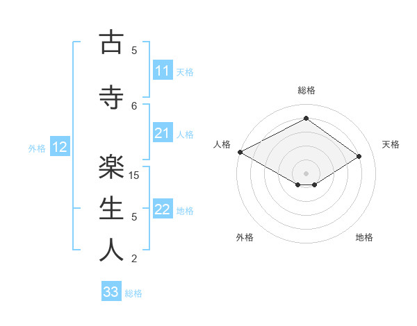 古寺 楽生人さんの総格は33画の4点!