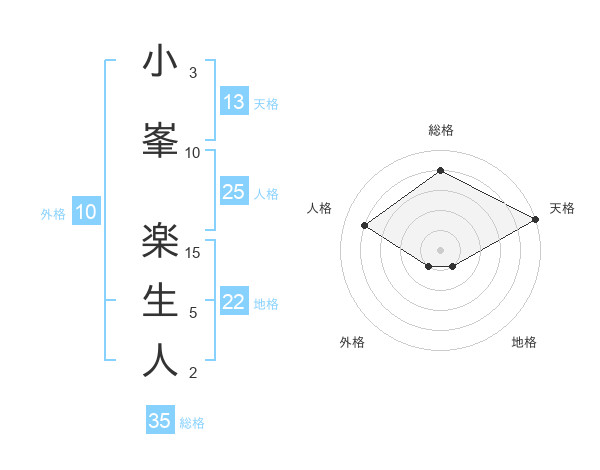 小峯 楽生人さんを姓名の画数から五運を鑑定