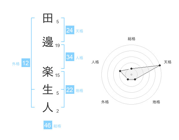 田邊 楽生人さんを姓名の画数から五運を鑑定