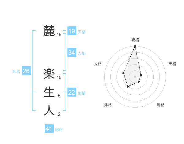 麓 楽生人さんの総格は41画の5点!