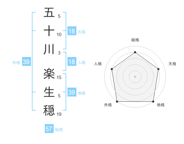 五十川 楽生穏さんを姓名の画数から五運を鑑定