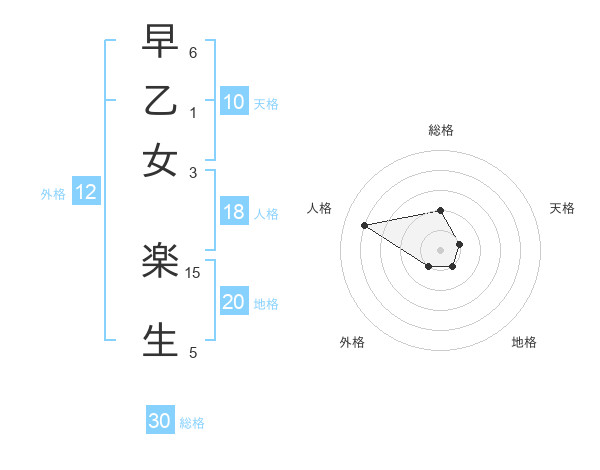 早乙女 楽生さんを姓名の画数から五運を鑑定