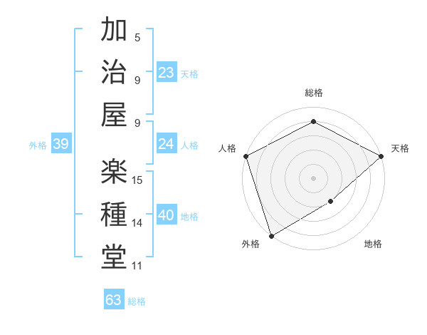 加治屋 楽種堂さんの総格は63画の4点!