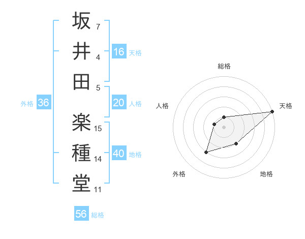 坂井田 楽種堂さんを姓名の画数から五運を鑑定