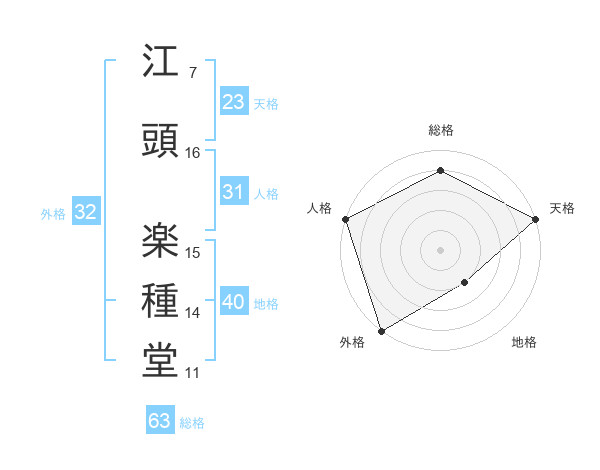 江頭 楽種堂さんを姓名の画数から五運を鑑定