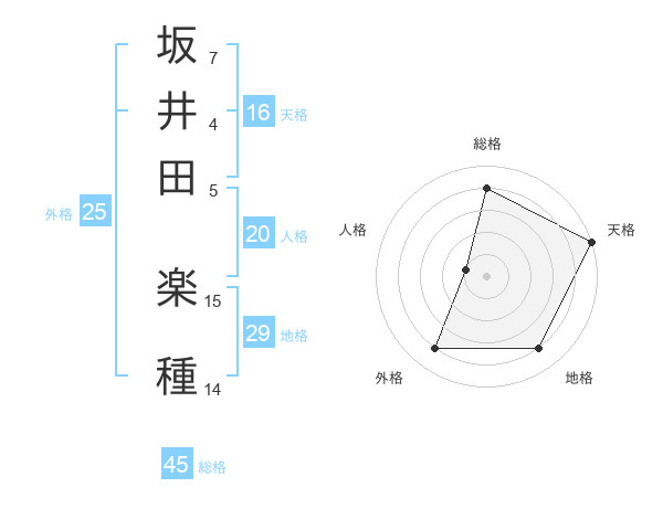 坂井田 楽種さんを姓名の画数から五運を鑑定