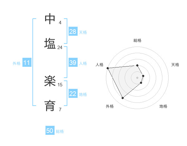 中塩 楽育さんの総格は50画の2点!