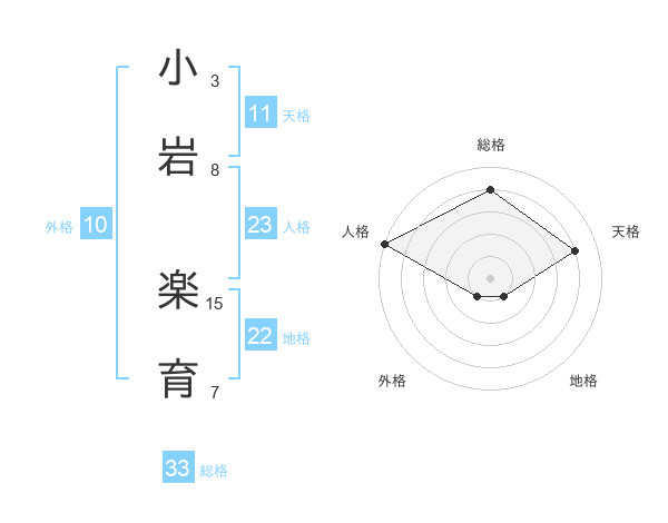 小岩 楽育さんの総格は33画の4点!
