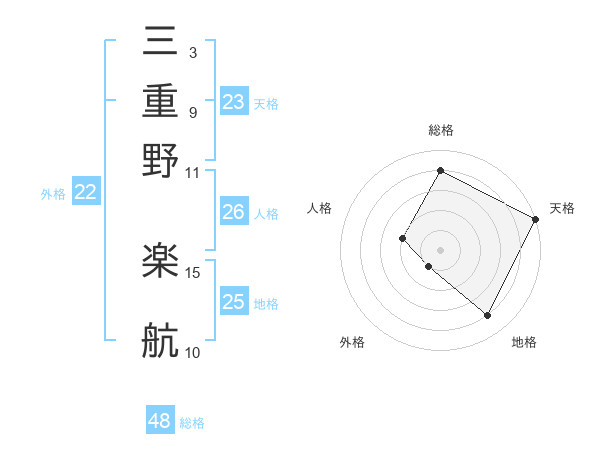 三重野 楽航さんの総格は48画の4点!