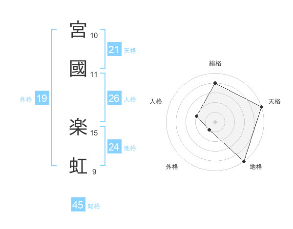 宮國 楽虹さんを姓名の画数から五運を鑑定