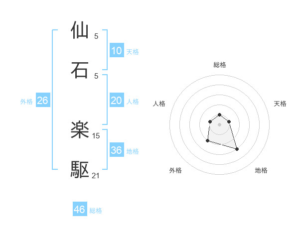 仙石 楽駆さんを姓名の画数から五運を鑑定