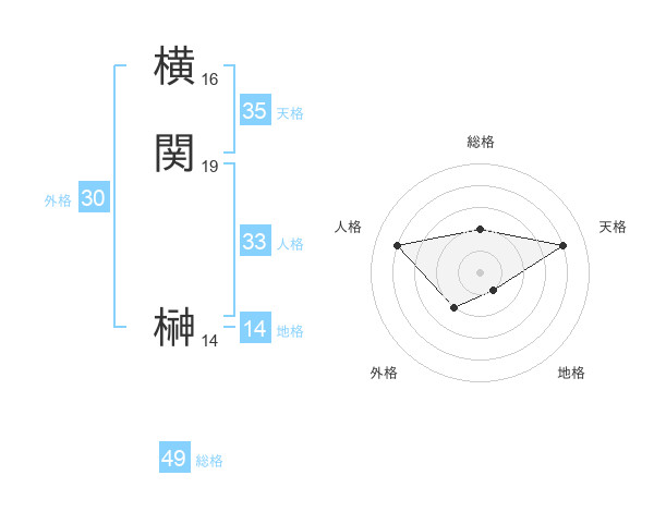 横関 榊さんの総格は49画の2点!