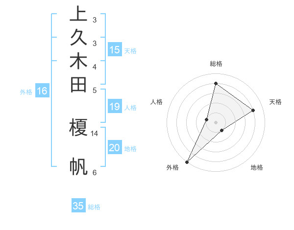 上久木田 榎帆さんを姓名の画数から五運を鑑定