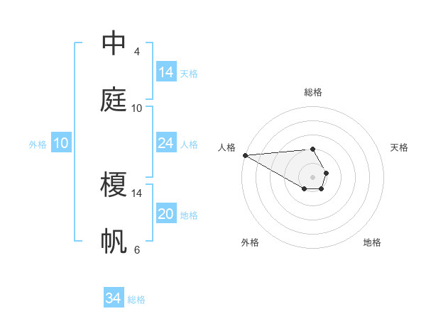 中庭 榎帆さんを姓名の画数から五運を鑑定