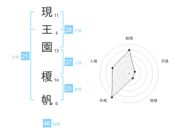 現王園 榎帆さんの外格は21画の5点!