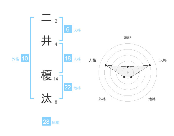 二井 榎汰さんの総格は28画の1点!