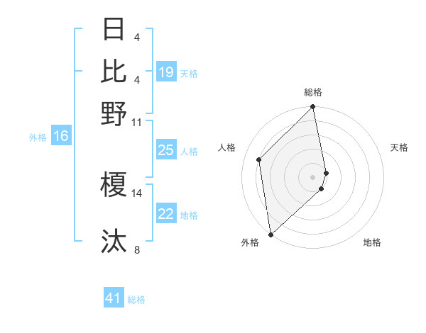 日比野 榎汰さんを姓名の画数から五運を鑑定