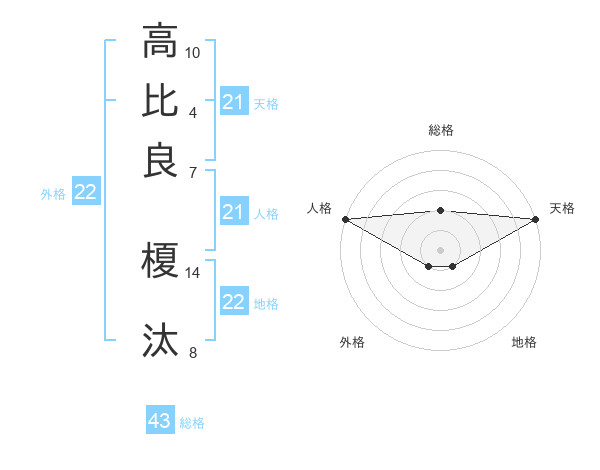 高比良 榎汰さんを姓名の画数から五運を鑑定