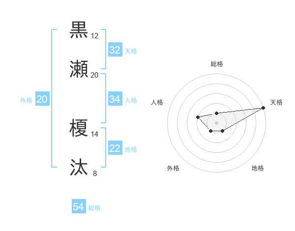 黒瀬 榎汰さんの総格は54画の1点!