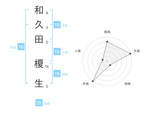 和久田 榎生さんの天格は16画の5点!
