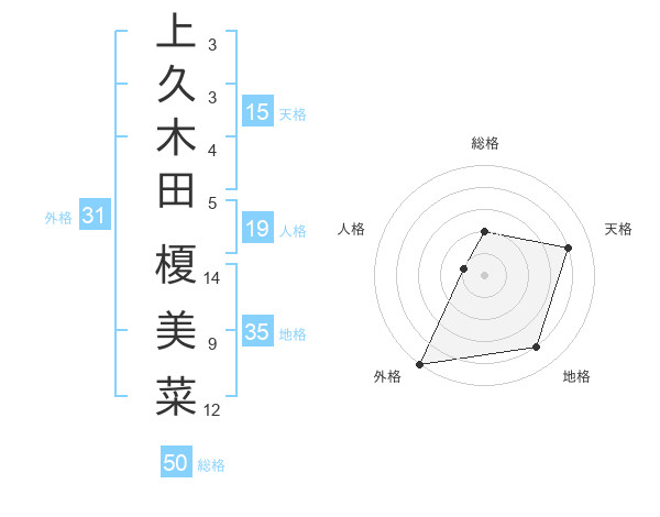 上久木田 榎美菜さんを姓名の画数から五運を鑑定