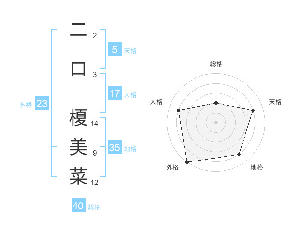二口 榎美菜さんを姓名の画数から五運を鑑定