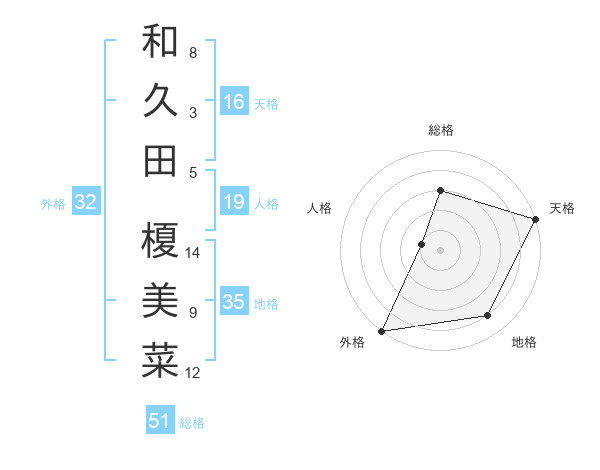 和久田 榎美菜さんの総格は51画の3点!