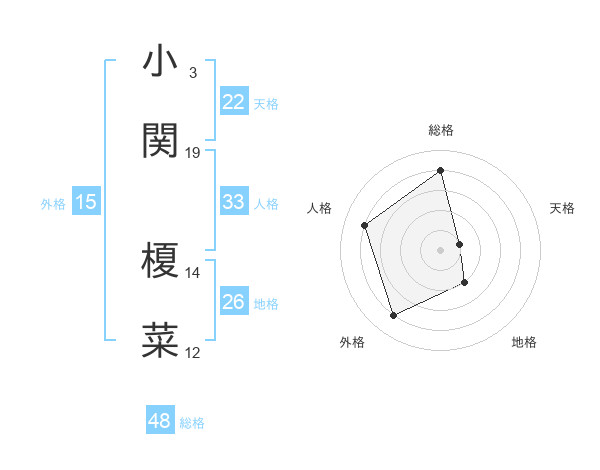 小関 榎菜さんを姓名の画数から五運を鑑定