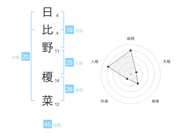 日比野 榎菜さんを姓名の画数から五運を鑑定