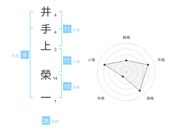 井手上 榮一さんを姓名の画数から五運を鑑定