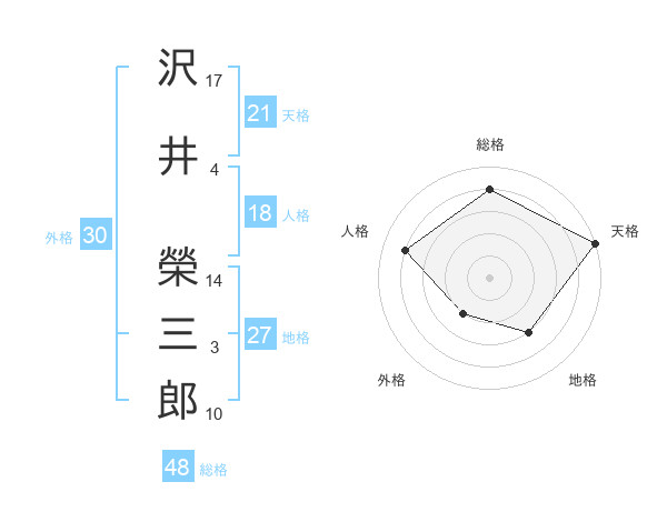 沢井 榮三郎さんの天格は21画の5点!