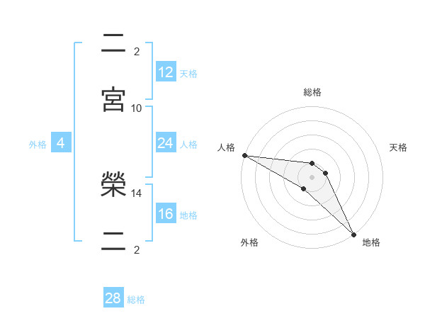 二宮 榮二さんの天格は12画の1点!