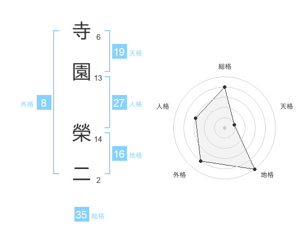 寺園 榮二さんを姓名の画数から五運を鑑定