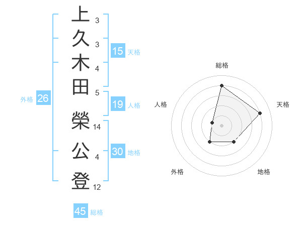 上久木田 榮公登さんを姓名の画数から五運を鑑定