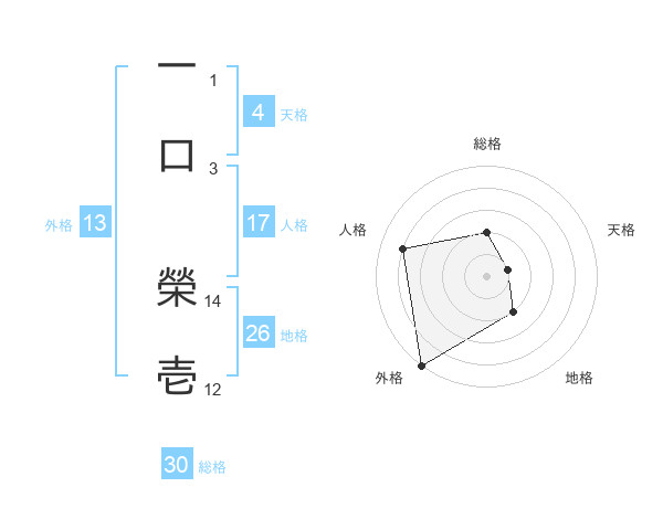 一口 榮壱さんを姓名の画数から五運を鑑定