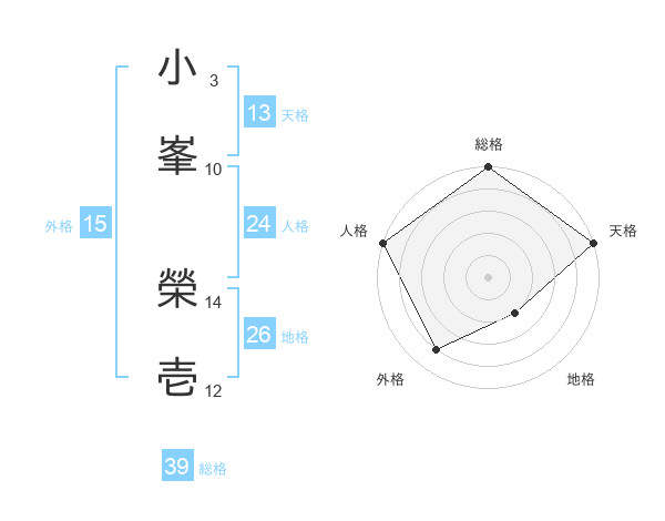 小峯 榮壱さんの総格は39画の5点!
