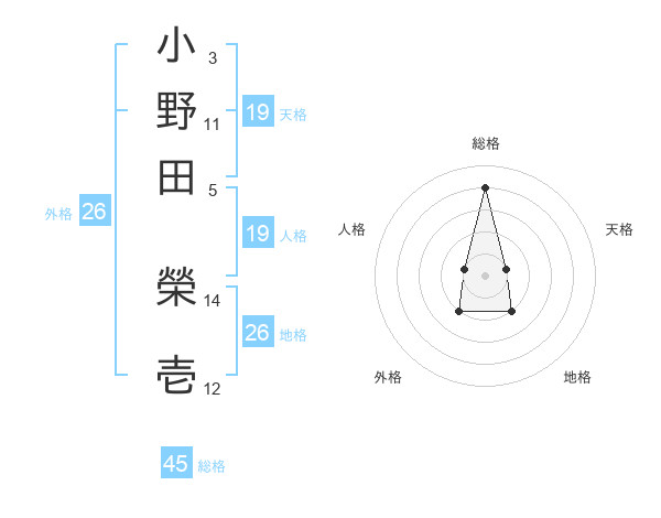 小野田 榮壱さんの総格は45画の4点!