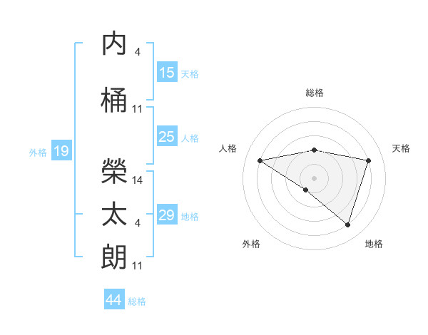 内桶 榮太朗さんを姓名の画数から五運を鑑定