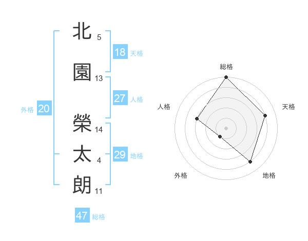 北園 榮太朗さんを姓名の画数から五運を鑑定