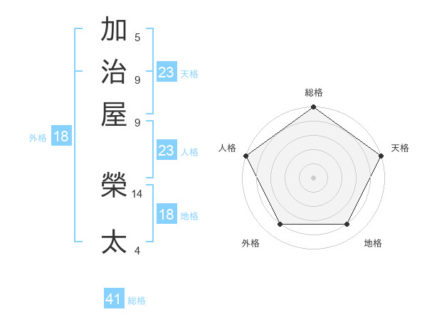 加治屋 榮太さんの天格は23画の5点