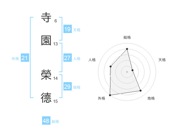 寺園 榮德さんの外格は21画の5点!