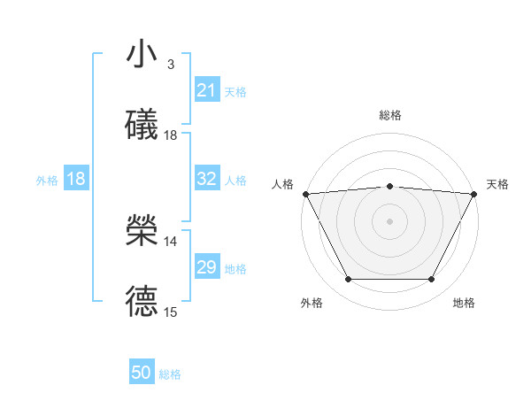 小礒 榮德さんの天格は21画の5点!