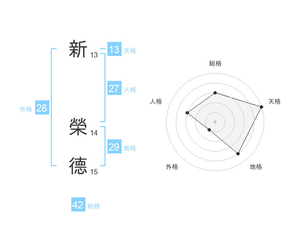 新 榮德さんの総格は42画の3点!