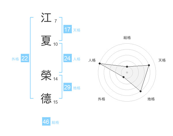 江夏 榮德さんを姓名の画数から五運を鑑定