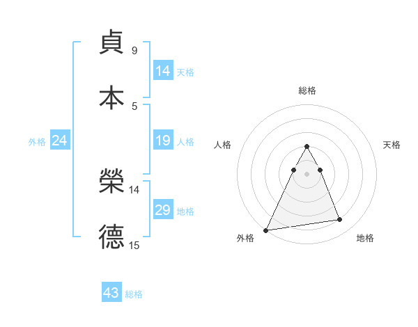 貞本 榮德さんの外格は24画の5点!
