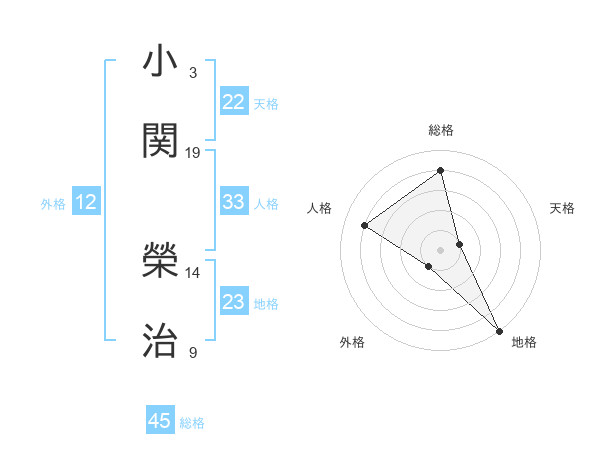小関 榮治さんの総格は45画の4点!