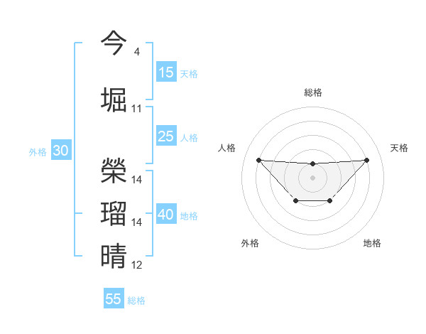 今堀 榮瑠晴さんの天格は15画の4点!