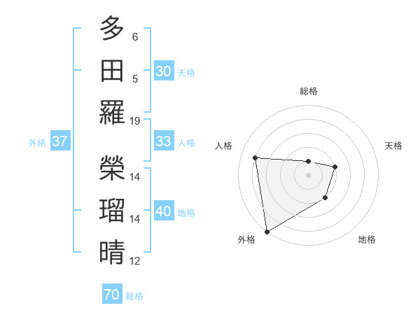 多田羅 榮瑠晴さんの外格は37画の5点!